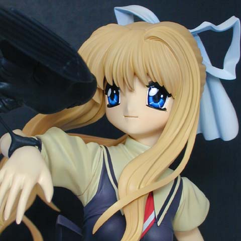 ![]() ←ステレオ写真です。完成日:2001/03/16 スケール:1/6(28cm) パーツ数:16(スタンド無し)(「そら」の足用にピアノ線が添付されます) ゴールっす(T_T)。 ってことで。泣きました、「Air」。その感動が冷めないうちにということでの一作です。 パーツ数がおもったより少なくて済んだので、形状の複雑さからすれば、けっこう組みやすいと思います。塗装もできるだけ楽になるような分割にしてありますし。