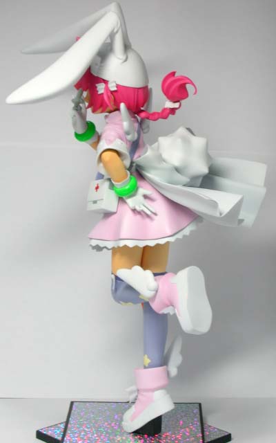 スケール:1/6(30cm 耳/ブーツ含む) パーツ数:44ベースは付属しません。 バッジ用シール、ペンダント用金属線、注射針用金属線付属、ほっぺ用ビニールテープ付属。 なんか、ノせられたような感じもしますが。勢いで作ってみました…にしては、パーツ数が異様に多いキットになってしまいました。持ち方も大変で…。 ぽよよんろっく氏&中島零氏、ファンです(^_^)。 2003WF冬に初出予定。 |
