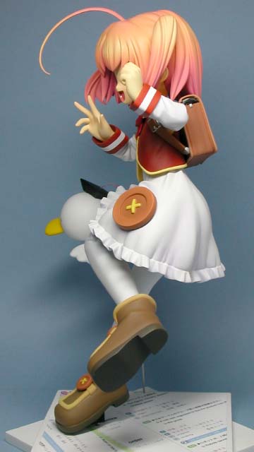 スケール:1/6(15cm) パーツ数:24(内ひよこ3パーツ。スタンド無し) まほろまてぃくより、まほろさんです。 ぢたま某氏のファンだったこともあり、作って見ました。 既に作られているものは、立ち姿が多かったので、チャレンジとばかり、座らせて見ました。…死にました(^_^;)。 ふりふり生かす為に、けっこうパーツも増えました。表面処理の手間はたいして変わらないと思いますが…もともとふりふりの表面処理は大変です。 2002WF冬に初出。 |