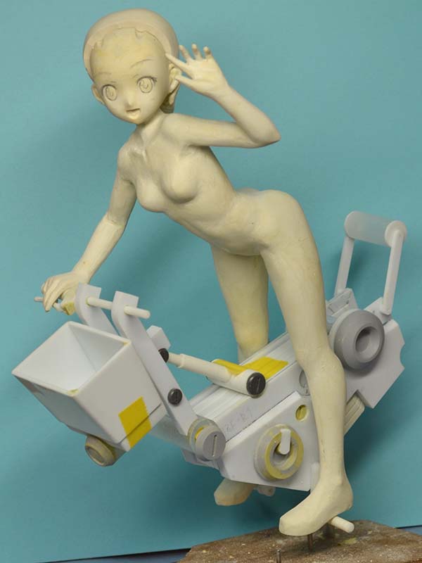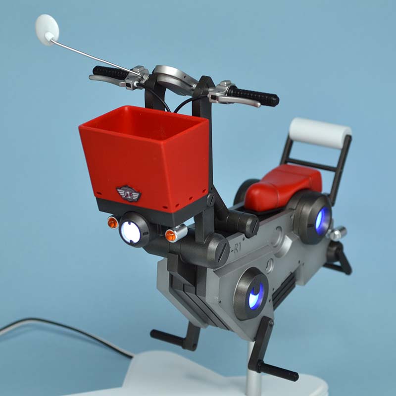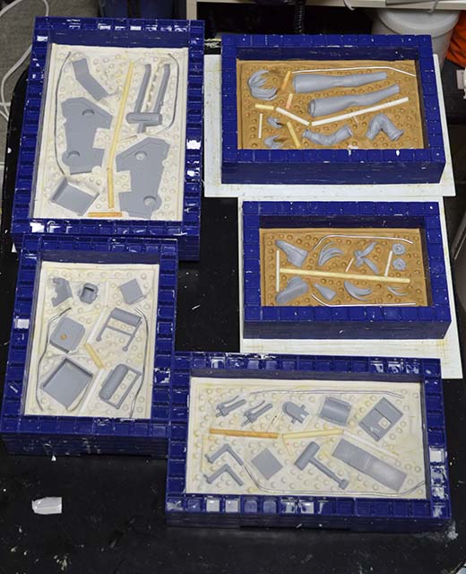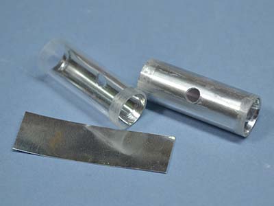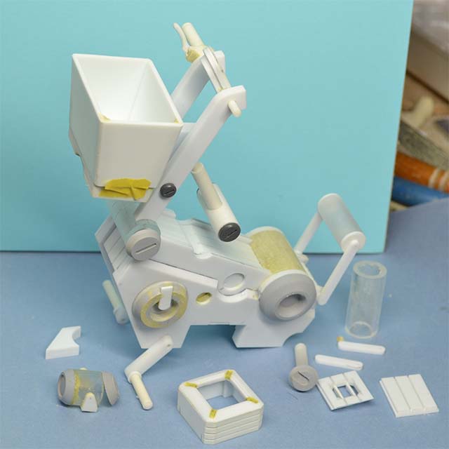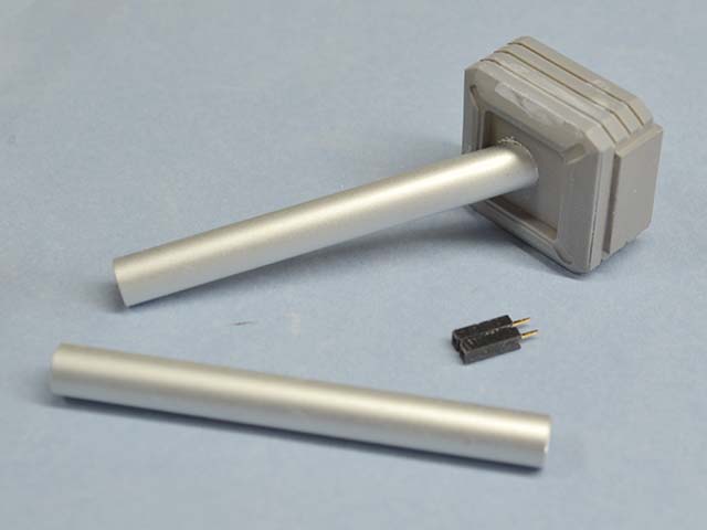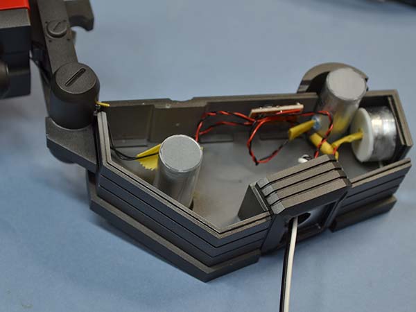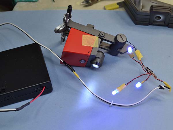 LEDの光が余計なところから漏れないように、筒状のパーツを端材で組んで。こちらはシルバーで塗装しました。