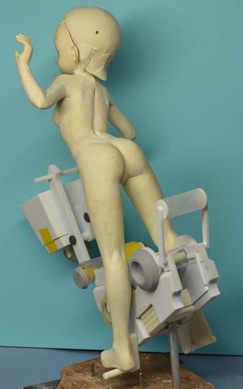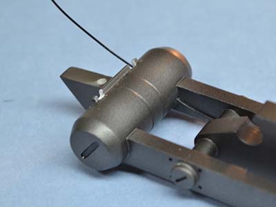 今回は、写真の部分に穴を開けて胴体に引き込みます。