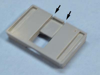 パーツの矢印あたりに、配線引き出しの溝を作っておきます。