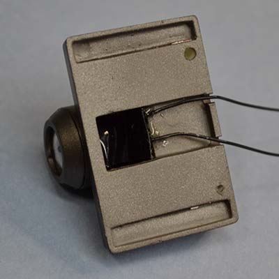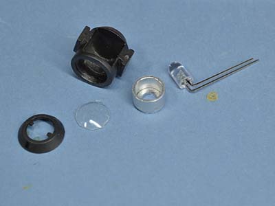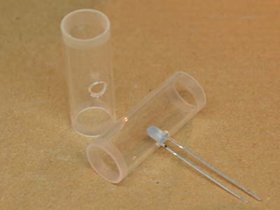 LEDは、光の広がりが狭い狭角タイプですので。ここにレンズ状のパーツを填めると、逆に拡散してしまいますので、注意。