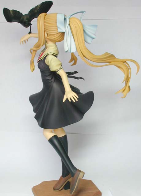ってことで、完成です。 メインアングルだと後ろ髪が半分隠れてしますのがもったいないのですが(^_^;)。実歳に置いてみると、前後にかなりのボリュームがあります。この辺、立体の醍醐味で写真では解りにくいのですが(完成アイテム展示のところで、ステレオ写真置いてありますので、ご参考に)。 色もいまいちわかりにくい写真ですが。そら/制服の黒い部分の色は、背景が黒で撮影した写真の物が近いですが。髪の毛は白が背景の写真が近いです。撮影は難しいです。 いろいろ苦労しましたが。だいたいイメージ通りにできましたってことで。満足しています(^_^)。