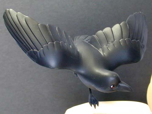 「そら」真っ黒ではなく、胴体部分には茶を、翼部分には青を薄く重ねて吹いて、質感出してあります。写真ではまずわかんない色合いですが(^_^;)。 |